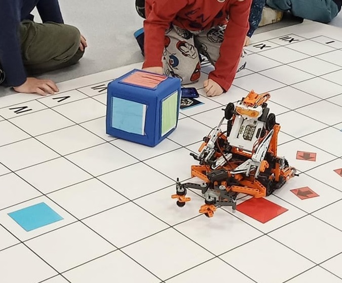 Podczas precy z matą wykorzystany zostanie programowalny robot „Clementoni”. Dzieci nauczą się nim sterować lub  programować go tak, aby przebył trasę do określonego celu. Poznają przy tym zasady i pojęcia związane z programowaniem.