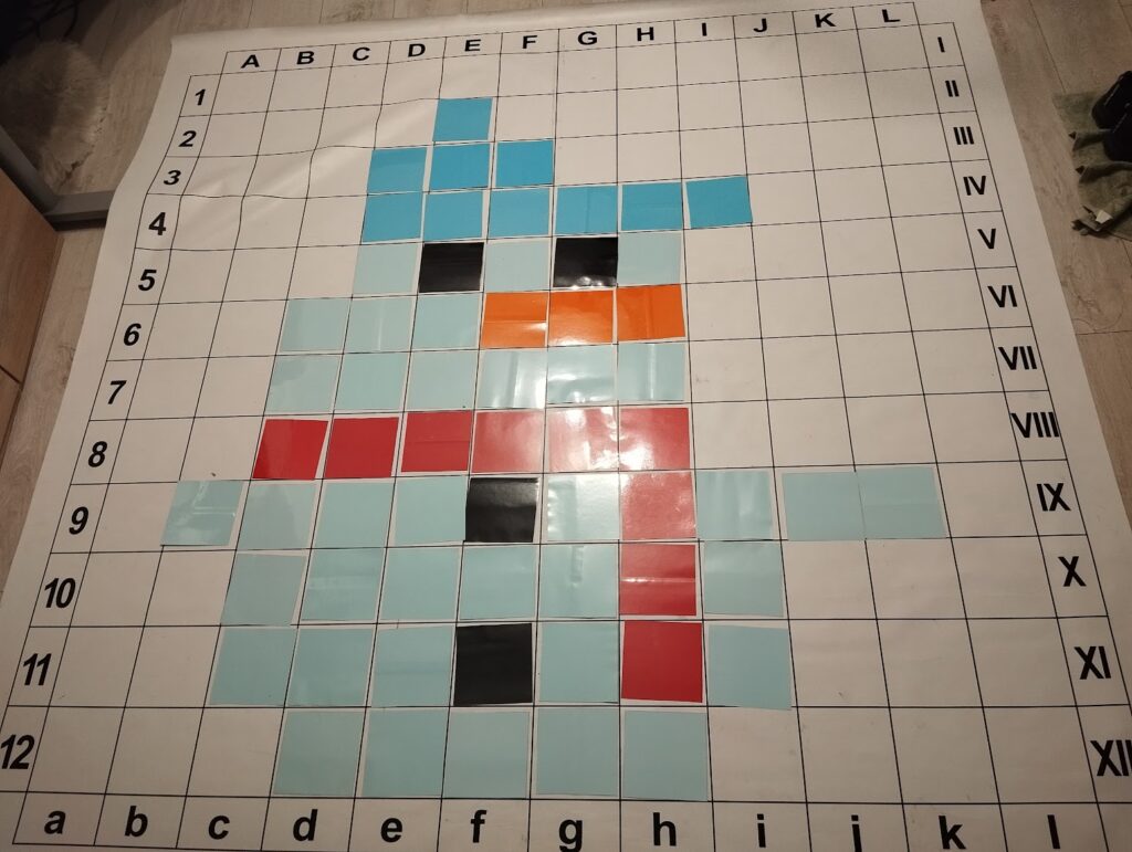 Na polach  uczniowie układają określone elementy, m.in. postaci, kształty, literki, cyferki. Tworzą obrazki z kolorowych kartoników lub kubeczków według koordynatów (dyktando graficzne), układają kod za pomocą strzałek i symboli, grają w gry logiczne (np. sudoku) oraz wykorzystują matę jako pole do poruszania się dla robotów.