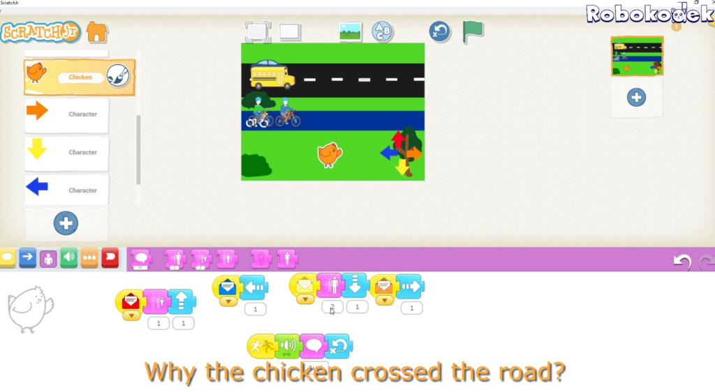 Scratch Junior to intuicyjny język programowania adresowany do dzieci w wieku 4-7 lat, pozwalający na tworzenie animacji i nieskomplikowanych gier. Nie potrzeba do niego umiejętności czytania i pisania. Dzieci, tworząc swoje pierwsze programy, korzystają z bloczków-puzzli opisanych obrazkami. Użytkownicy układają z kolorowych bloczków prosty kod, który sprawia, że wesołe postaci poruszają się, wydają dźwięki, znikają. Podczas zabawy najmłodsi uczą się jak rozwiązywać problemy, projektować aplikacje i jak można twórczo wykorzystywać technologię!